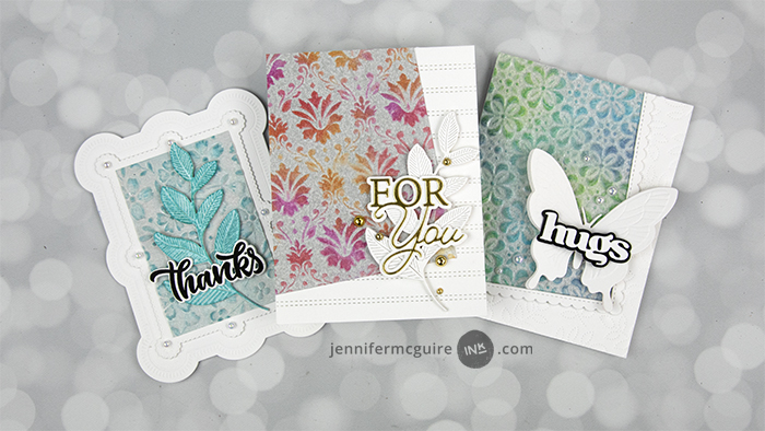 Here are the cards from my video along with the main products featured. For the full supply list, scroll down to the thumbnails at the end of this post.
