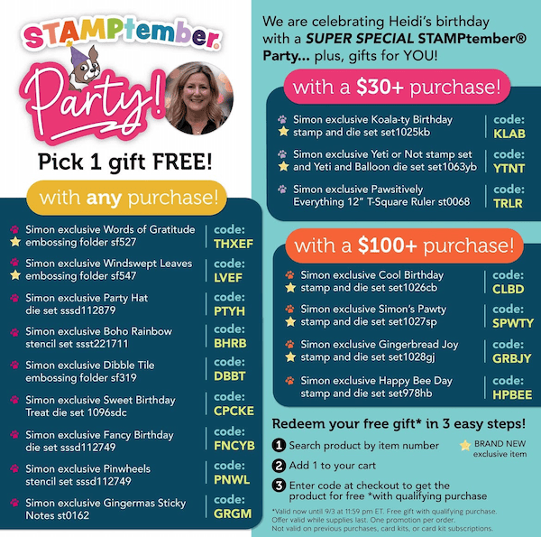 Simon Says Stamp is celebrating the beginning of STAMPtember® and Heidi’s birthday with LOTS of FREE gifts! Today only.